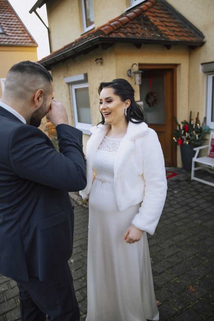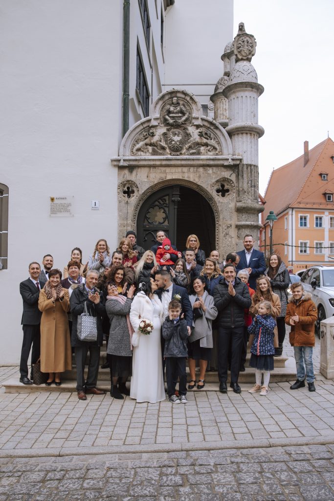 Es ging gleich mit dem Getting Ready von der Mona los. Die wurde von der Nisy Borges Make-Up geschminckt und fertig gemacht. Währendessen machte sich der Miguel schon bei ihm zuhause fertig. Nach dem emotionalen First Look ging es dann gleich weiter zu der standesamtliche Trauung in Nördlingen. Nachher wurde es sehr klein mit der Familie und den engen Freunden zusammen gefeiert.